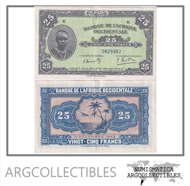 Africa Occidental Billete 25 Francos 1942 P-30 XF