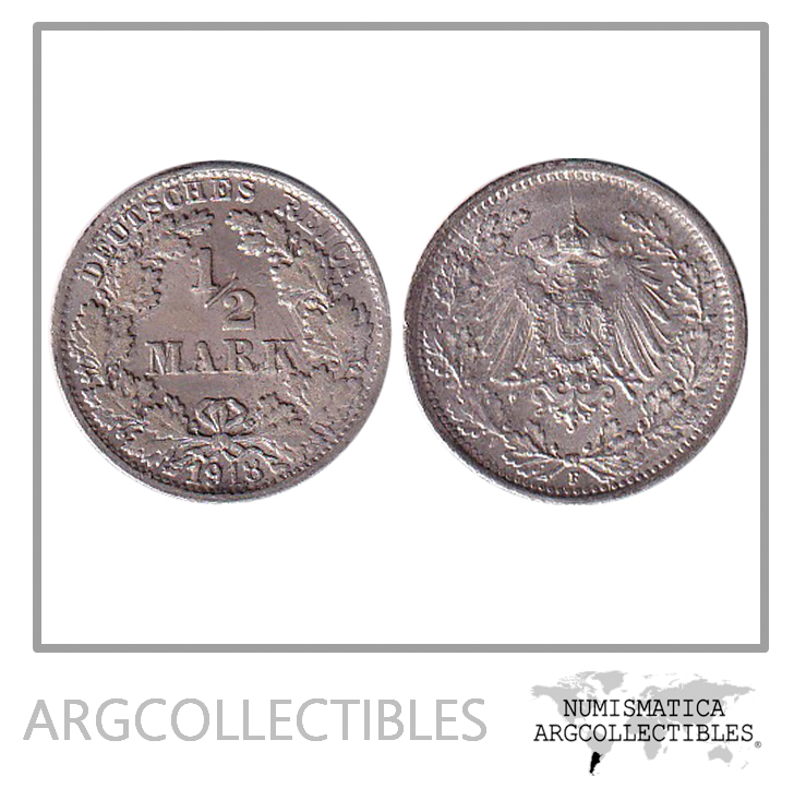 Alemania Moneda 1/2 Marco 1918 F Plata 900 Km-17 XF+