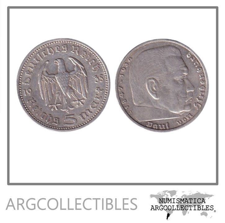 Alemania Moneda 5 Marcos 1935 A 3er Reich Plata 900 KM-86 VF