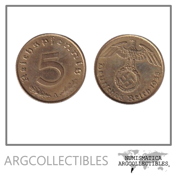 Alemania Moneda 5 Pfening 1938 A 3er Reich Bronce KM-91 AU