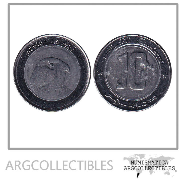 Argelia Moneda 10 Dinars 2016 KM-124 Bimetalica Halcon UNC