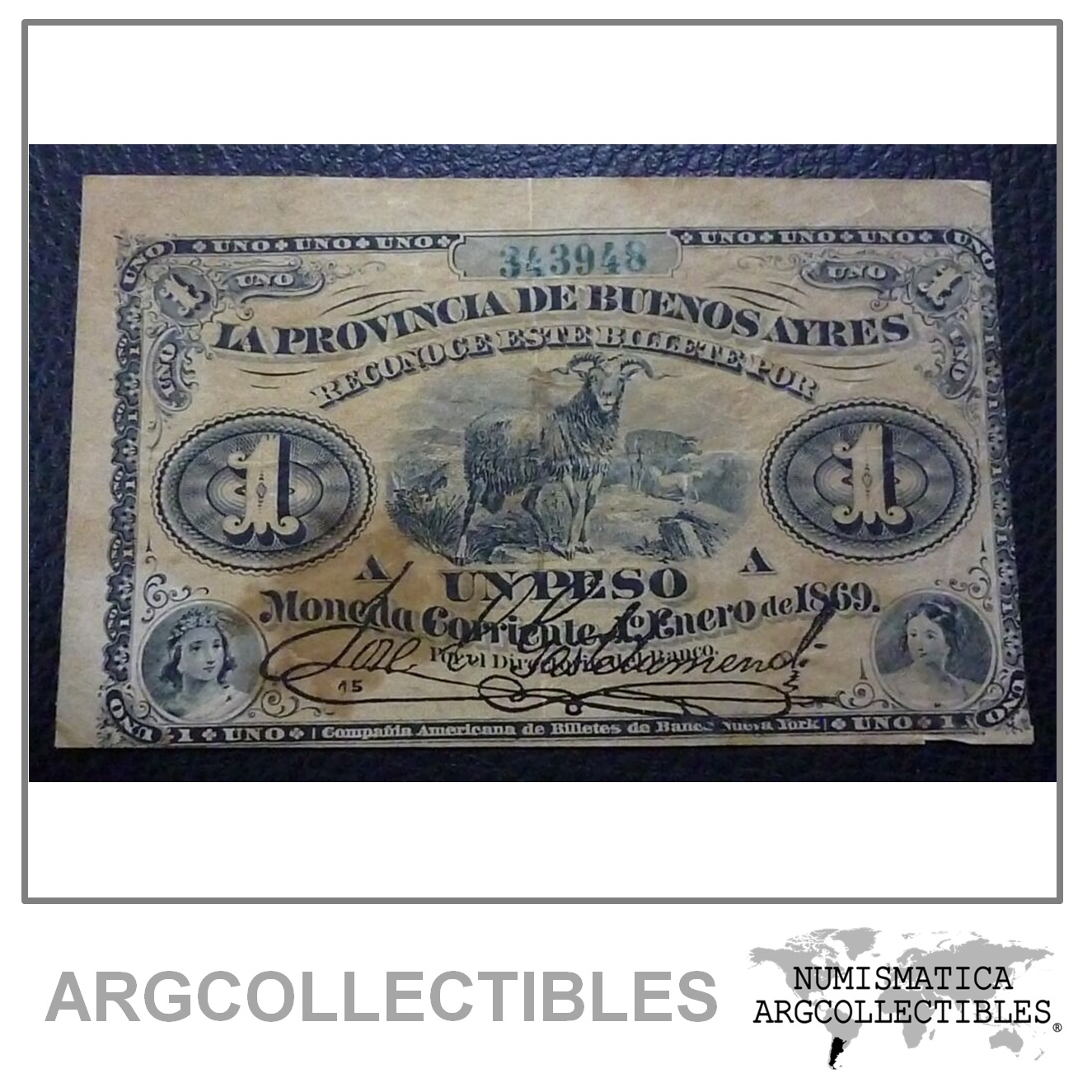 ARGENTINA Billete 1 Peso, Pick S481 VF- 1869 (Buenos Aires)