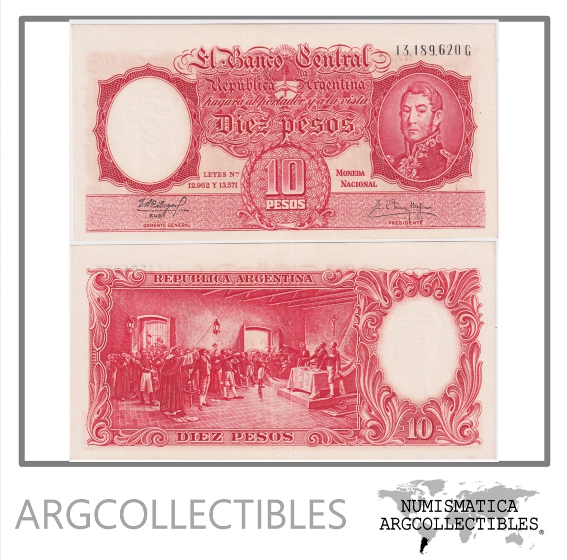 Argentina Billete 10 Pesos 1961 P-270c/BOT-1971 UNC Serie G