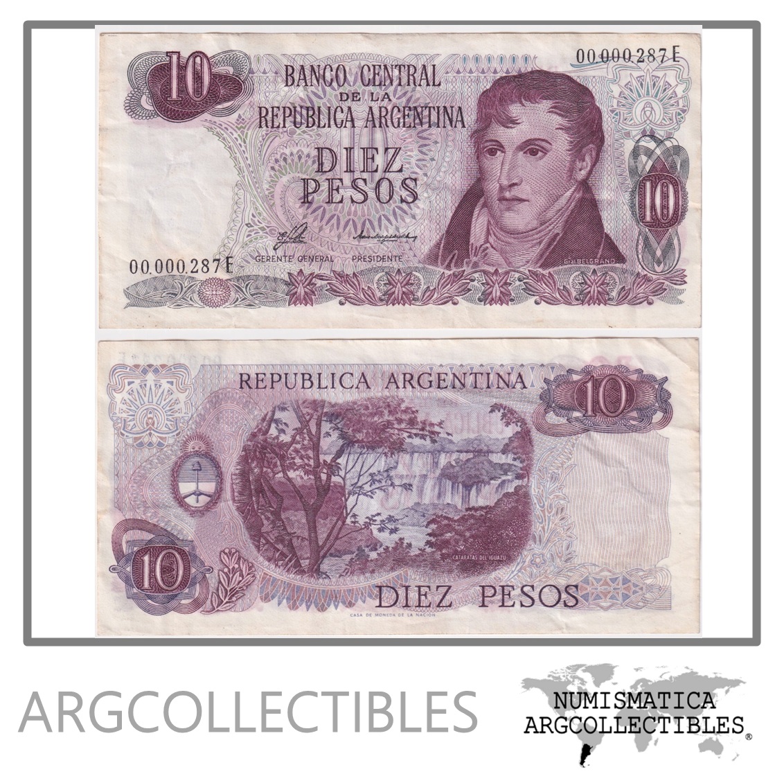 Argentina Billete 10 Pesos P-300/BOT-2362 VF+ 1976 Serie E (Numero Bajo)