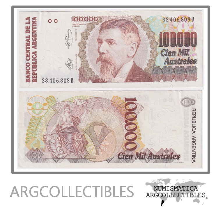 Argentina Billete 100.000 Australes 1991 P-337/BOT-2895 XF (SERIE B)