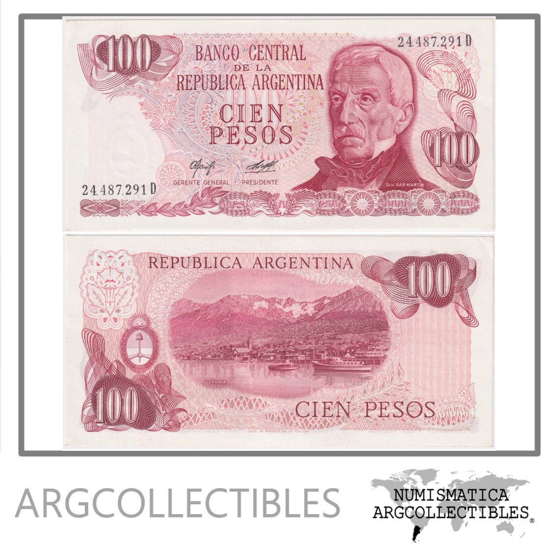 ARGENTINA Billete 100 Pesos 1977 P-302a/BOT-2408 AU Serie D