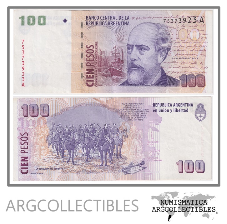 Argentina Billete 100 Pesos 2001 P-351/BOT-3705 VF+ (Serie A)