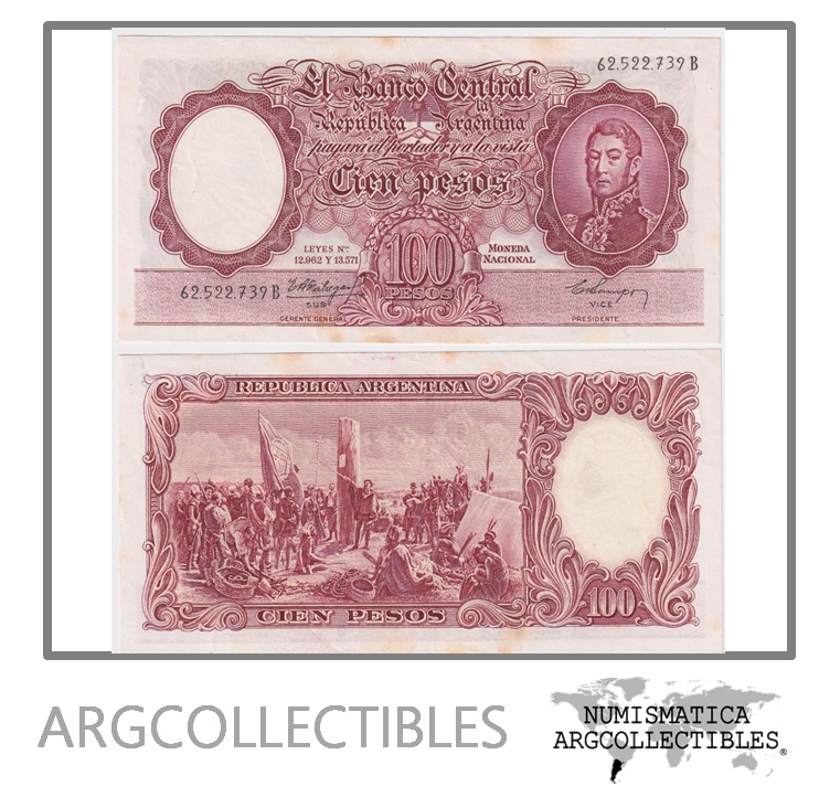 Argentina Billete 100 Pesos P-272b/BOT-2055 VF+ 1960 Serie B