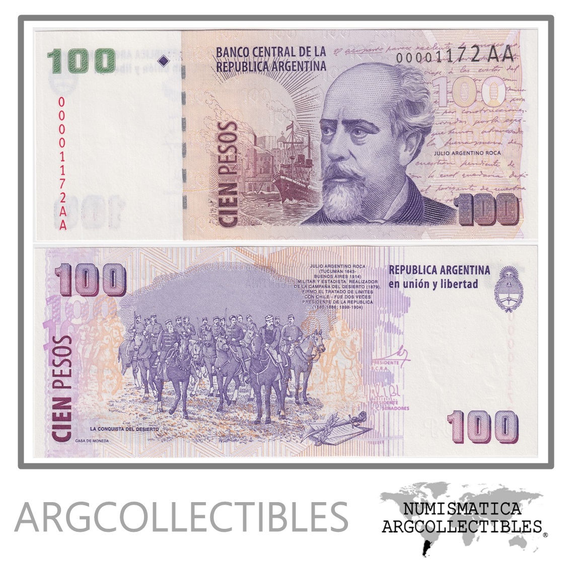 Argentina Billete 100 Pesos P-357 / BOT-3758 UNC 2013 Numero Bajo Serie AA