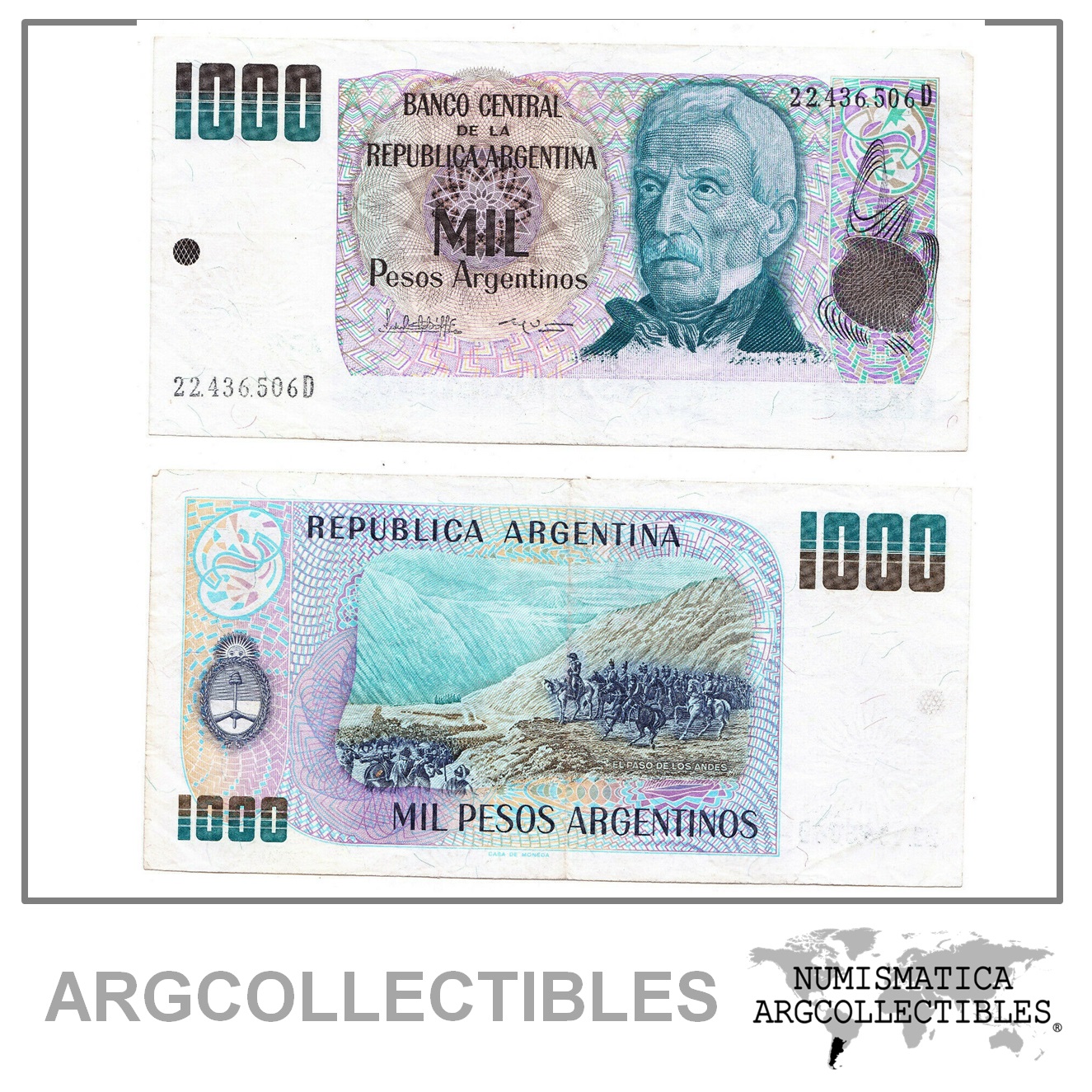 ARGENTINA Billete 1000 Pesos Argentinos 1984 P-317 VF+ SERIE D ERROR