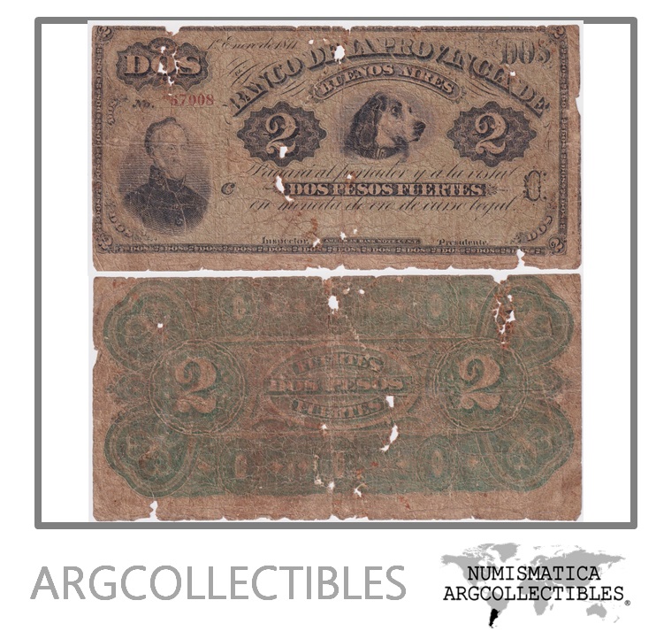 Argentina Billete 2 Pesos 1877 Banco de la Provincia de Buenos Aires P-S-525/BAU-BA-166a Poor
