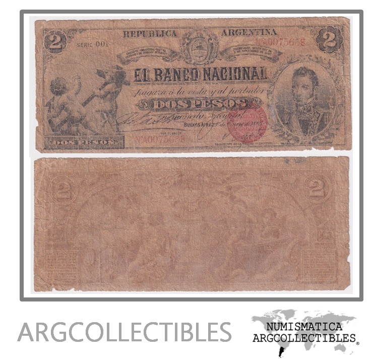 Argentina Billete 2 Pesos 1891 Banco Nacional P-S-1092b/BAV-BNG-2 F-