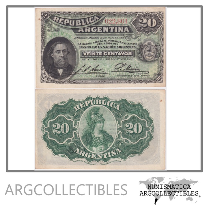 Argentina Billete 20 Centavos 1895 P-229a/BOT-1047 AU