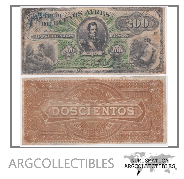 Argentina Billete 200 Pesos 1869 Provincia de Buenos Aires P-S-496/BAU-BA-138 VF+