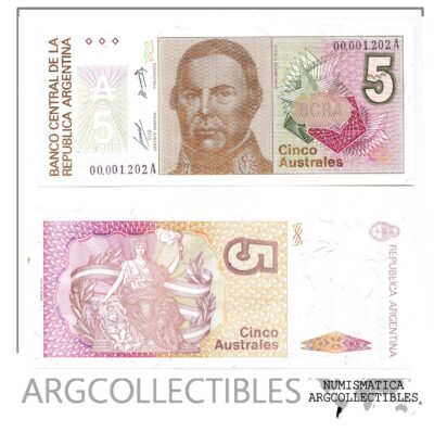 ARGENTINA Billete 5 Australes 1985 P-324a/BOT-2811 UNC (Numero Bajo)
