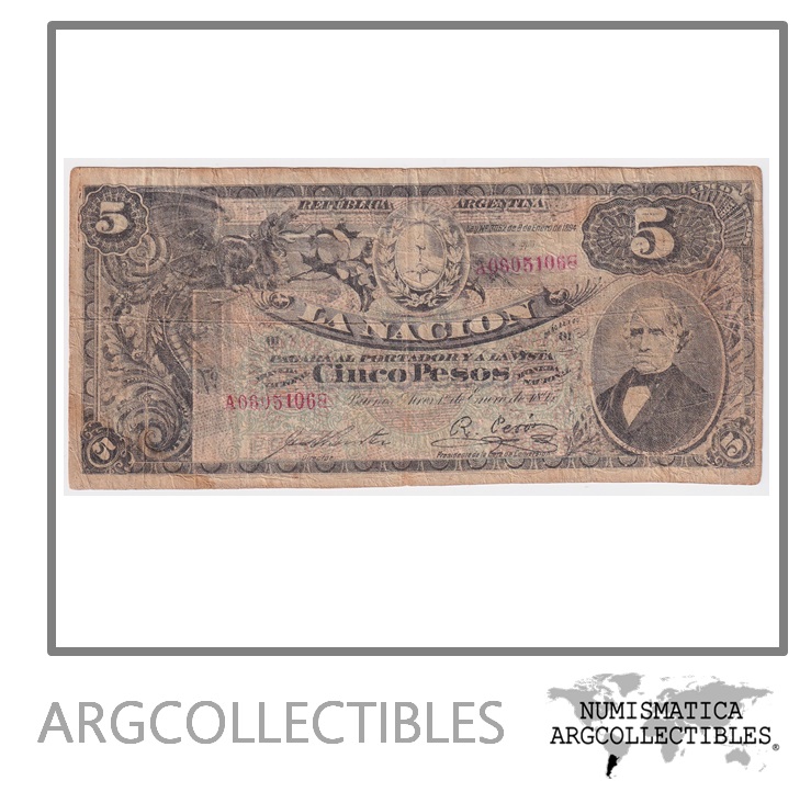 Argentina Billete 5 Pesos 1895 P-220 / BOT-1309 F+ La Nacion
