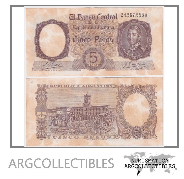 Argentina Billete 5 Pesos 1960 P-275b/BOT-1921 XF+ Serie A (Manchado)