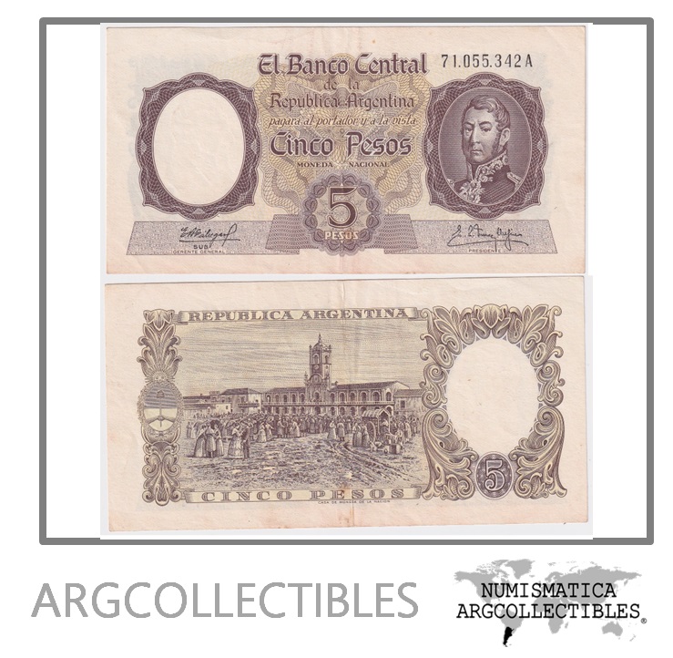 Argentina Billete 5 Pesos 1962 P-275c/BOT-1925 XF (Serie A)