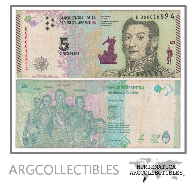 Argentina Billete 5 Pesos 2015 P-359/BOT-3904 VF (Reposicion) (Numero Bajo)