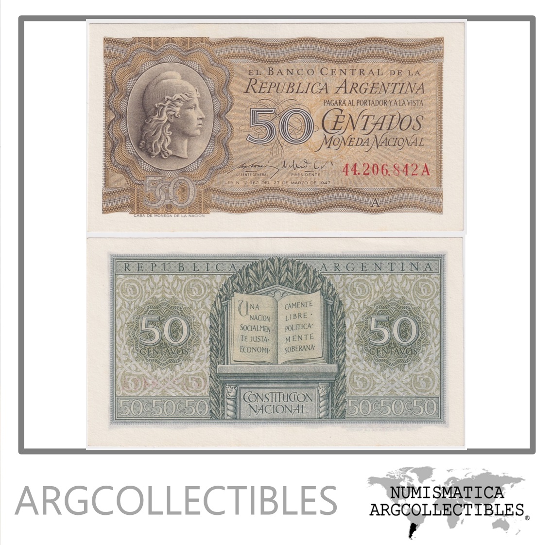 Argentina Billete 50 Centavos 1950 P-259b/BOT-1901a UNC Serie A
