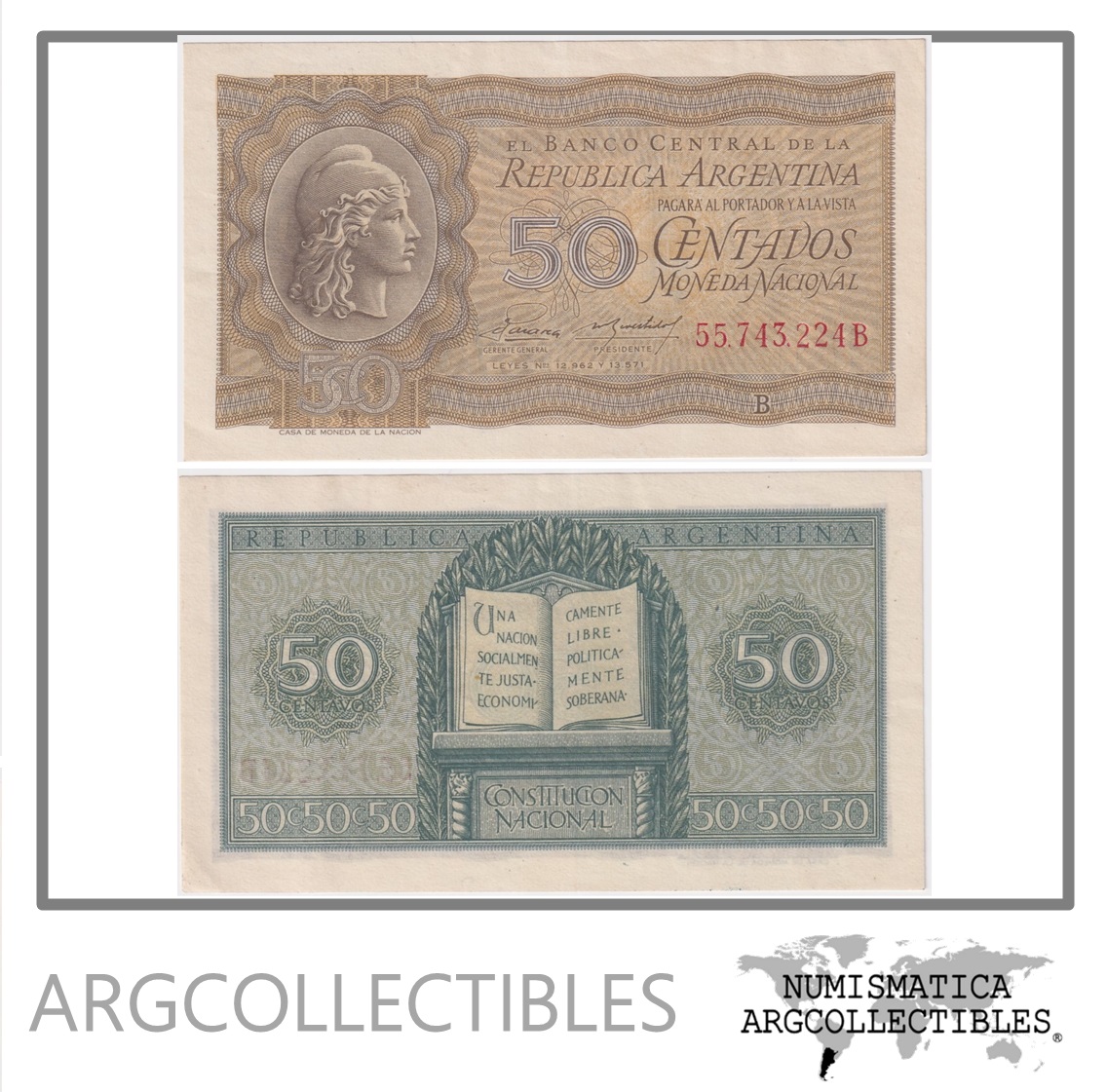 Argentina Billete 50 Centavos 1955 P-261/BOT-1906 AU (Serie B)
