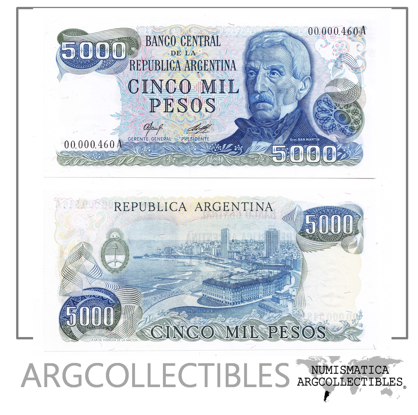 ARGENTINA Billete 5000 Pesos 1977 P-305/BOT-2464 UNC Numero Bajo 460A