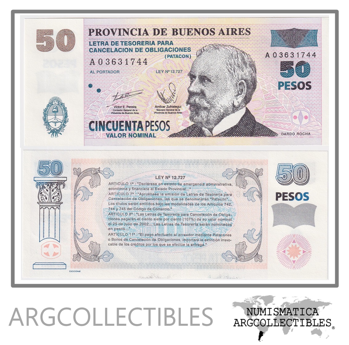Argentina Billete Bono 50 Pesos Patacon 2001 Serie A UNC