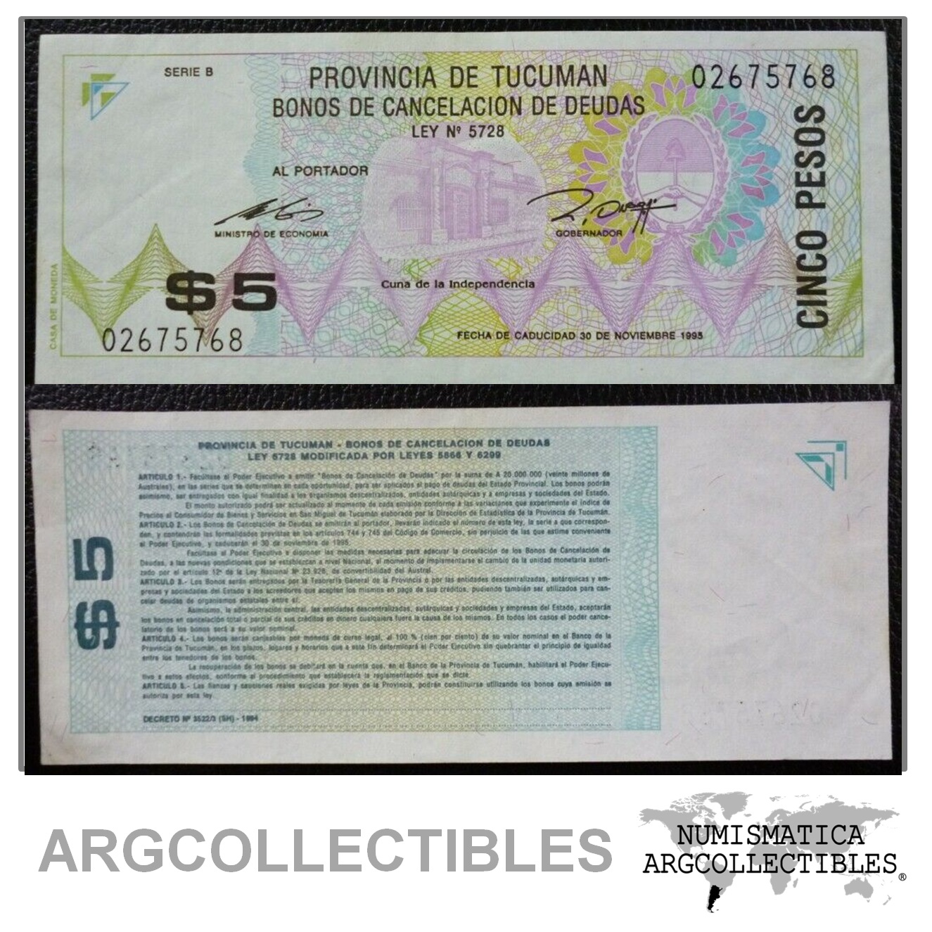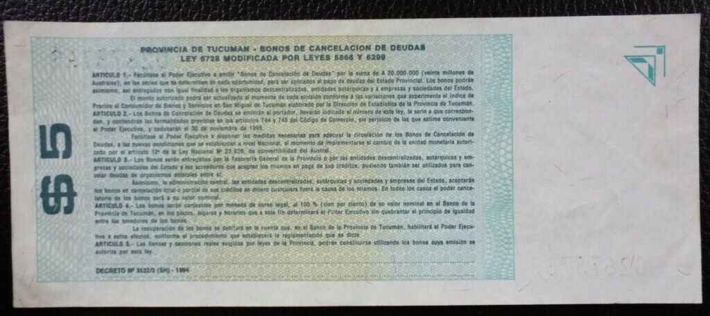 ARGENTINA Emergencia Billete 5 Pesos, P.EC435 XF 1994 (Tucuman)