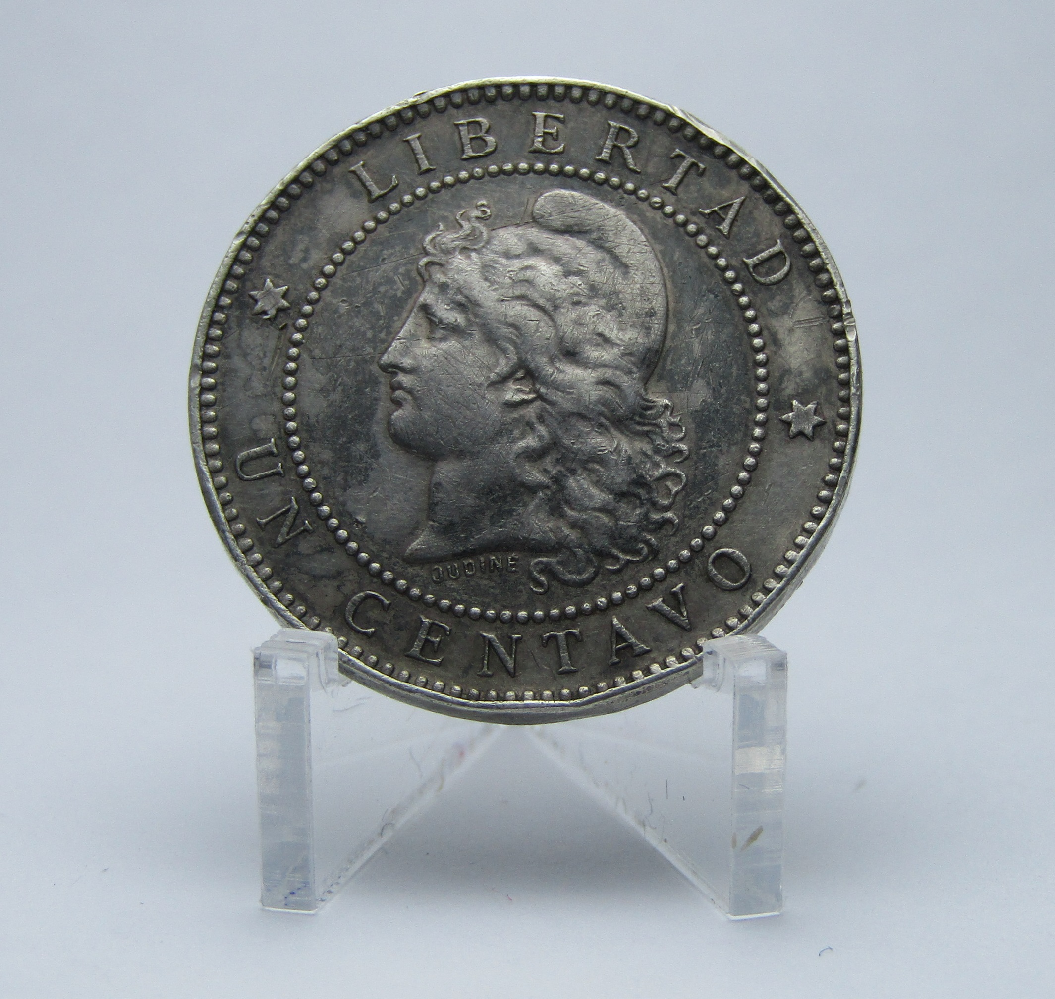 Argentina Moneda 1 Centavo 18XX (1880) Plata Patterns-Essai PN-23 Vf Detalles