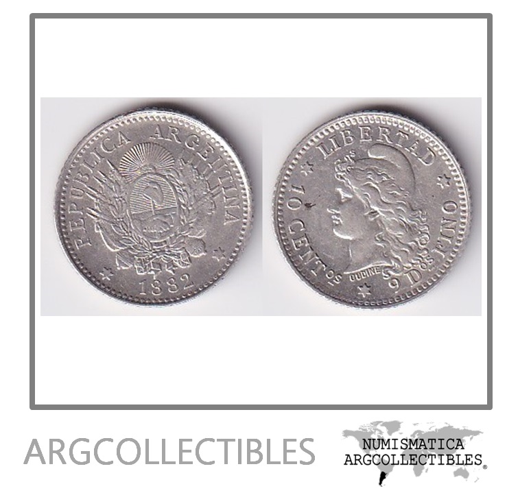 Argentina Moneda 10 Centavos 1882 Plata Patacon Km-26 Au