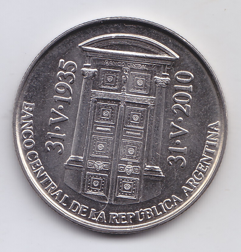 Argentina Moneda 2 Pesos 2010 Aniversario 75 BCRA UNC