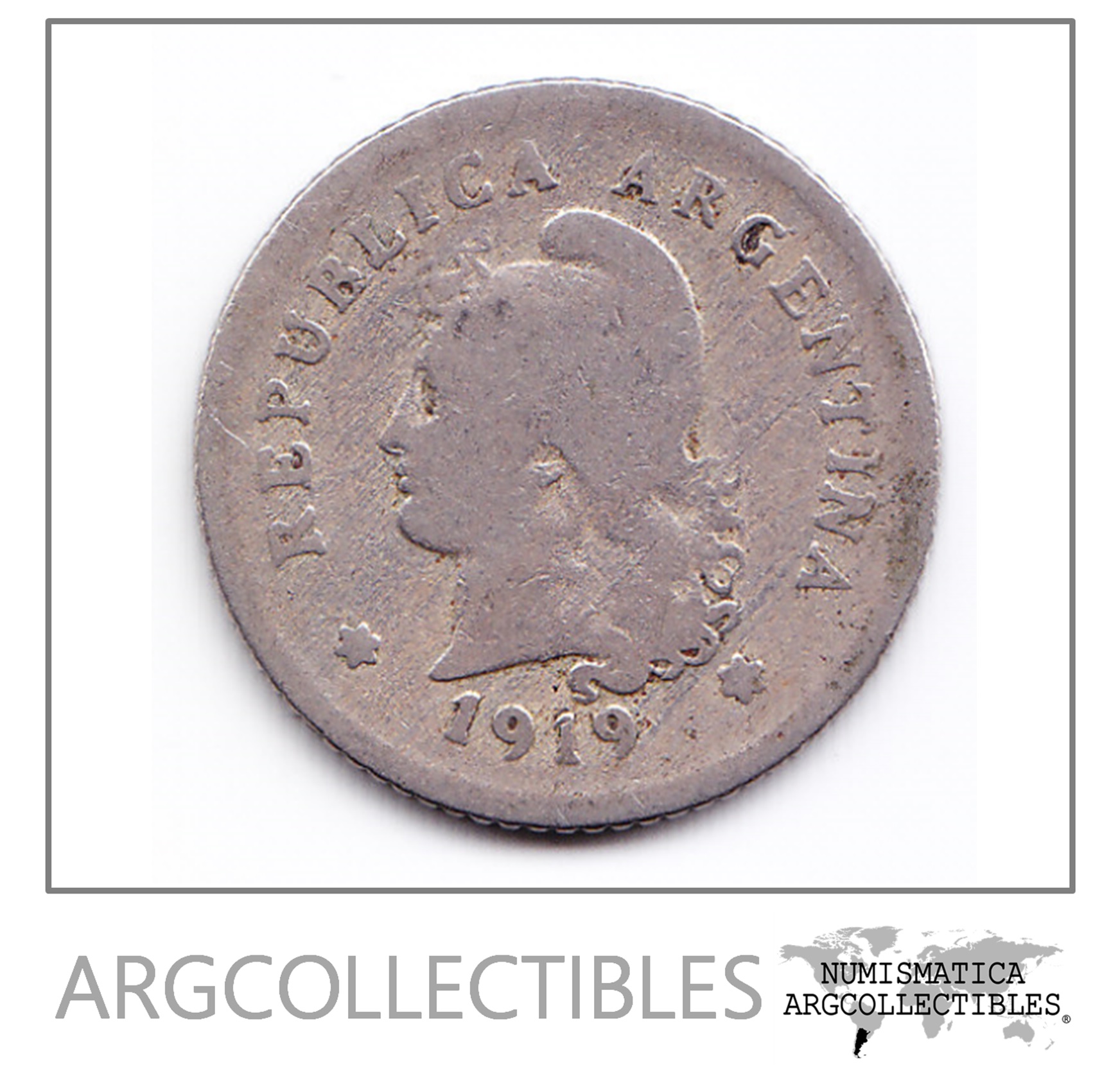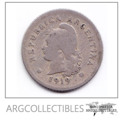 Argentina Moneda Nacional 10 Centavos 1919 Niquel F