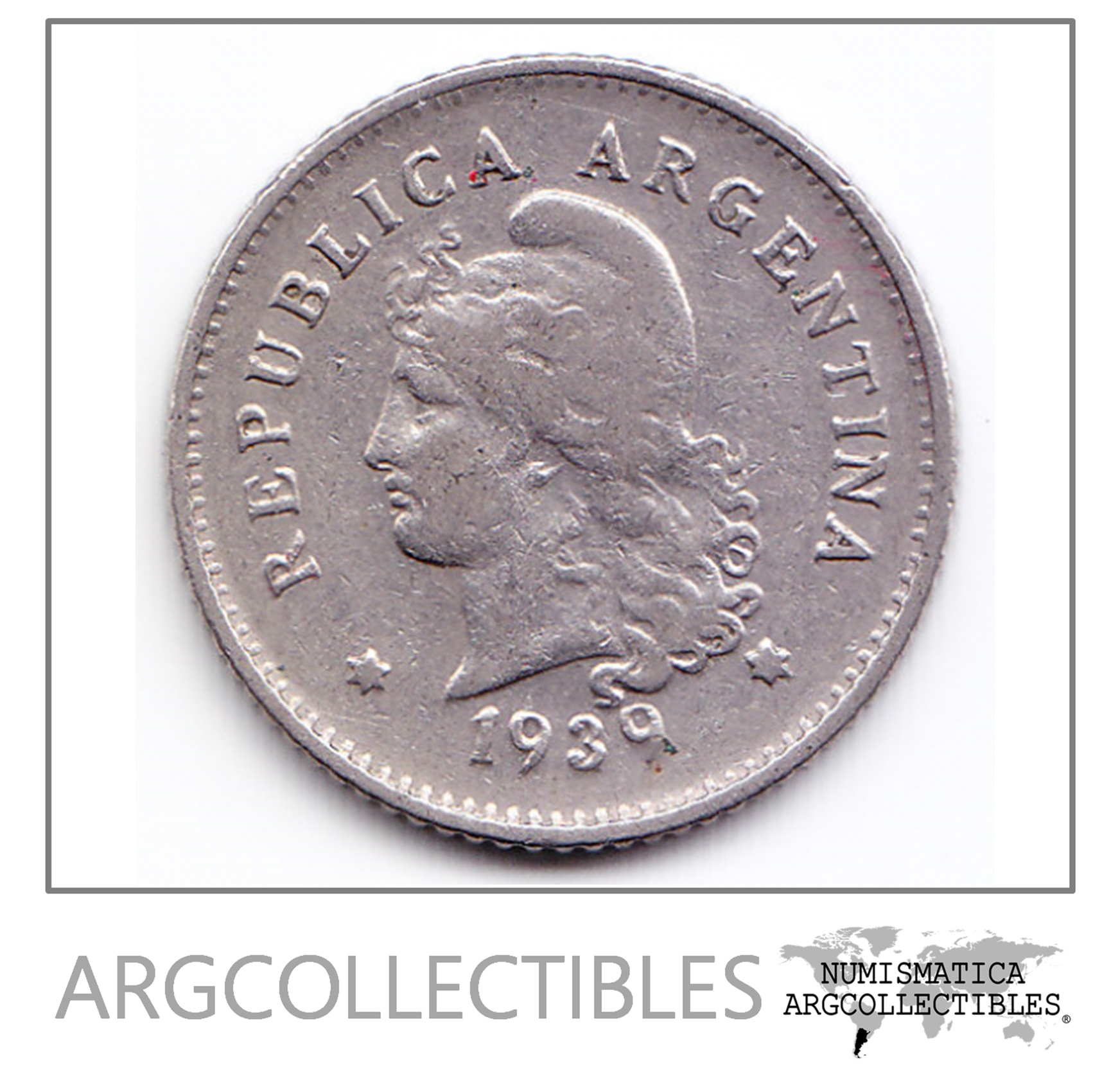 Argentina Moneda Nacional 10 Centavos 1939 Niquel Vf+