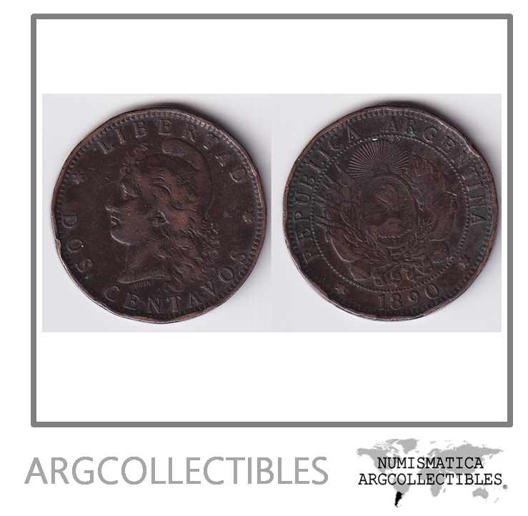 Argentina Moneda Nacional 2 Centavos Patacon 1890 Cobre F / F+