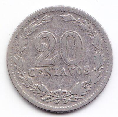 Argentina Moneda Nacional 20 Centavos 1907 Niquel F-