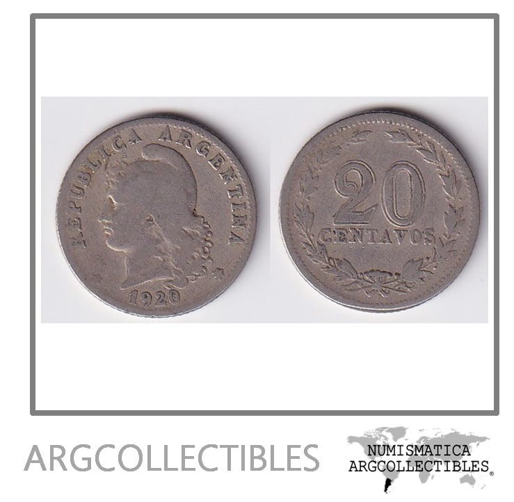 Argentina Moneda Nacional 20 Centavos 1920 Niquel F / F+