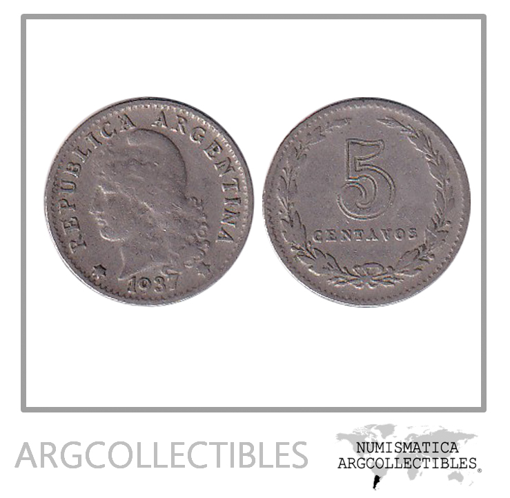 Argentina Moneda Nacional 5 Centavos 1937 Niquel Vf