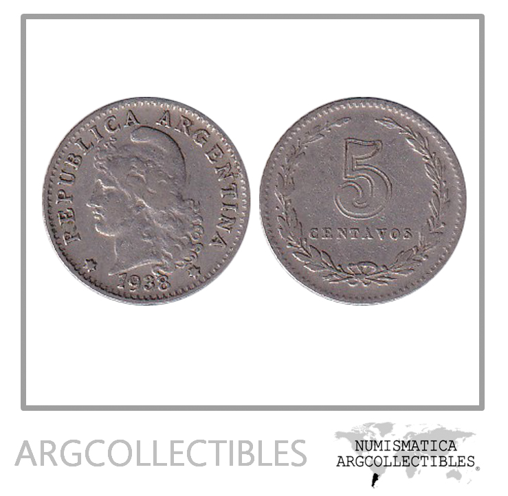 Argentina Moneda Nacional 5 Centavos 1938 Niquel Vf