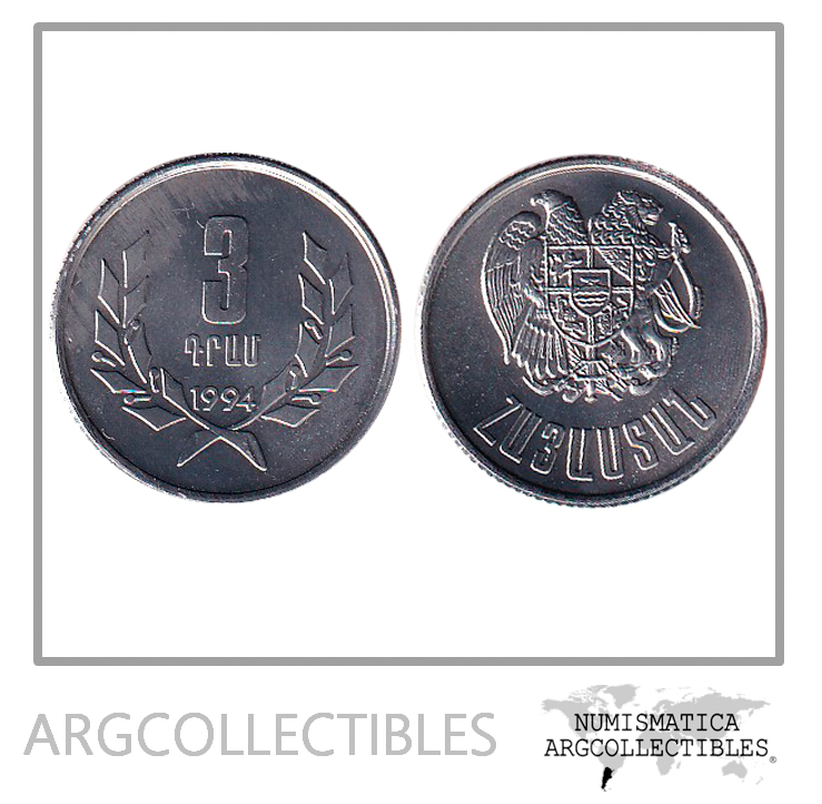 Armenia Moneda 3 Dram 1994 Aluminio KM-55 UNC