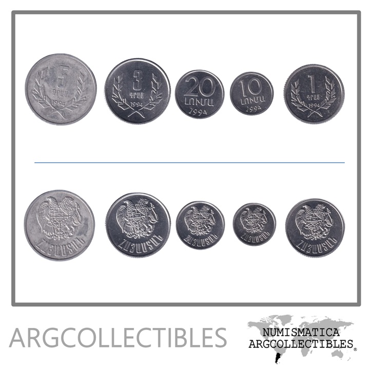 Armenia Set x 5 Monedas 0,10-0,20-1-3-5- Dram 1994 Aluminio UNC