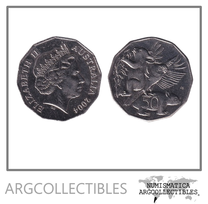 Australia Moneda 50 Centavos 2004 Fauna Loriquito, Koala y Uombat Niquel KM-694 AU