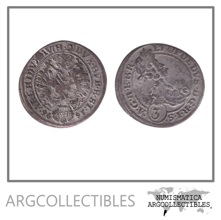 Austria Moneda 3 Kreuzer 1696 Plata Rey Leopoldo I KM-1639 F+