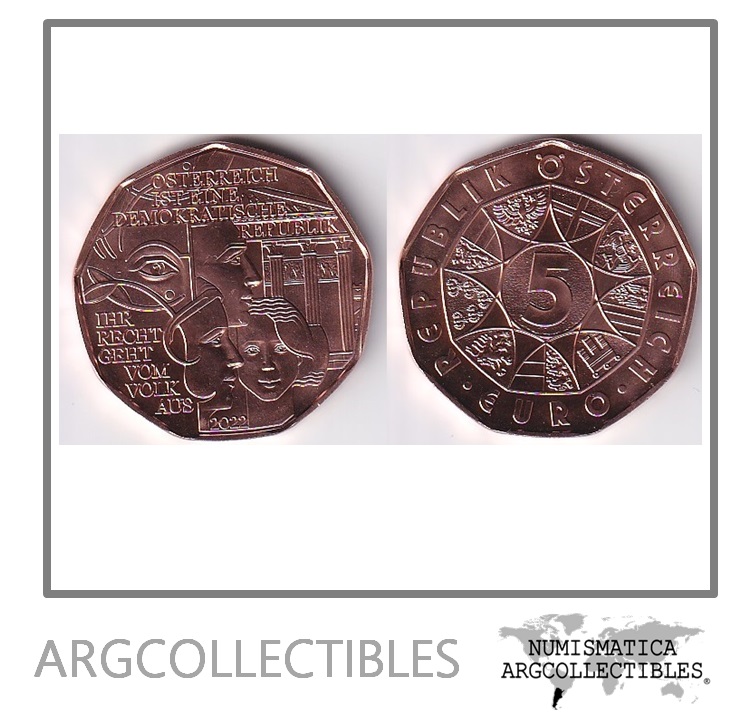 Austria Moneda 5 Euros 2022 Republica Democratica Cobre UNC