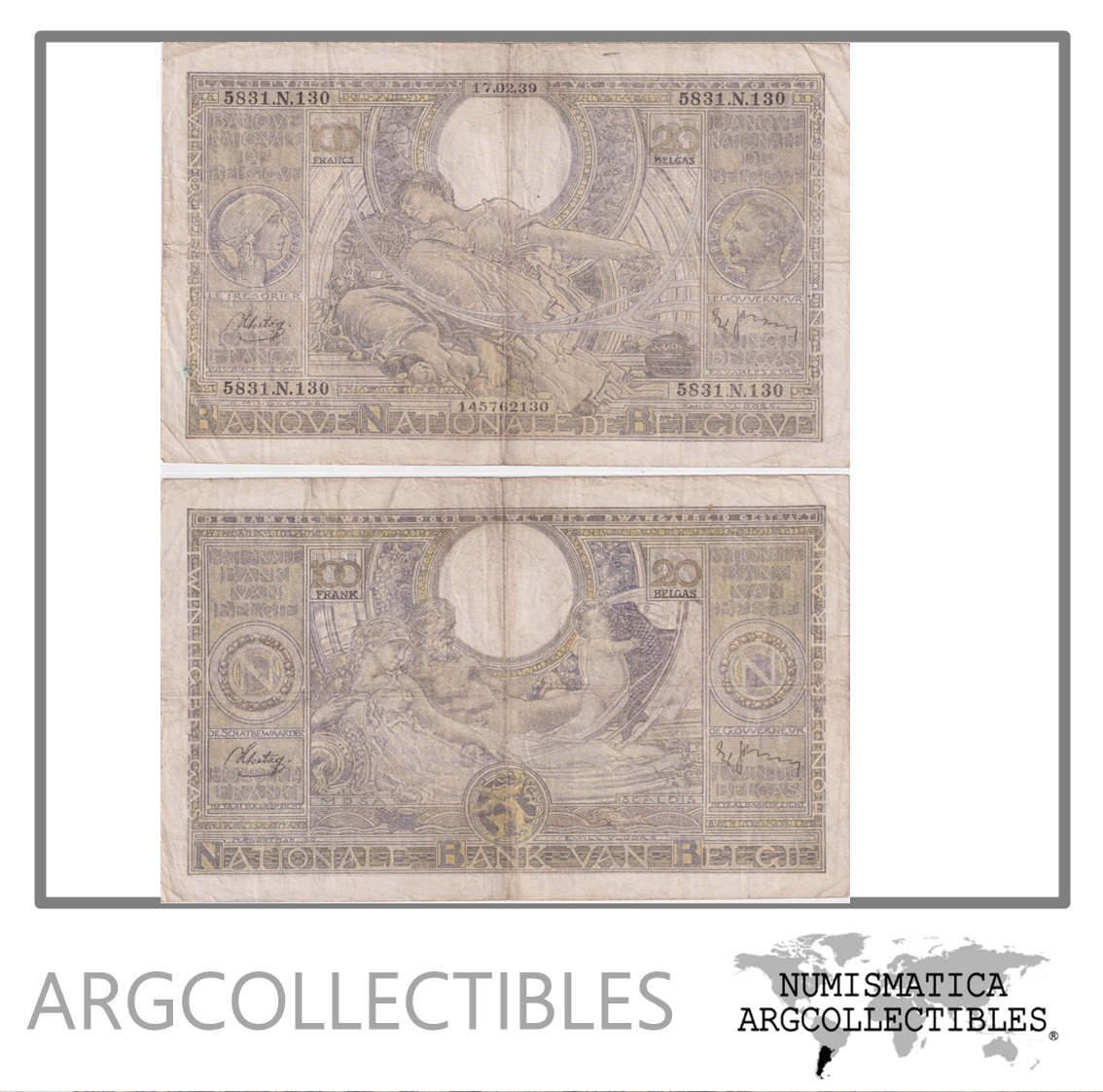 Belgica Billete 100 Francos 1939 P-107 VF