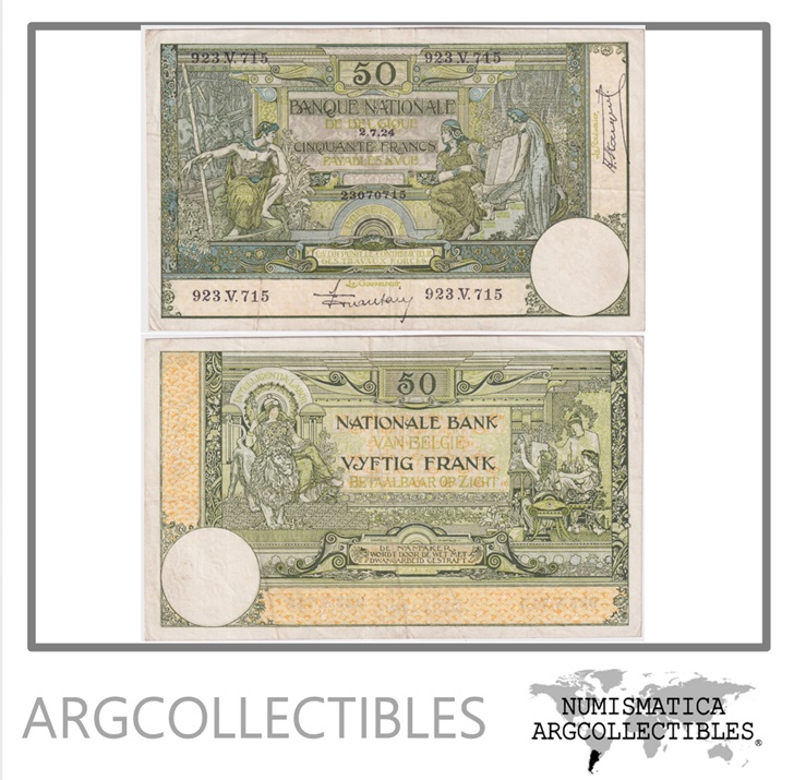 Belgica Billete 50 Francos 1924 P-68c VF+