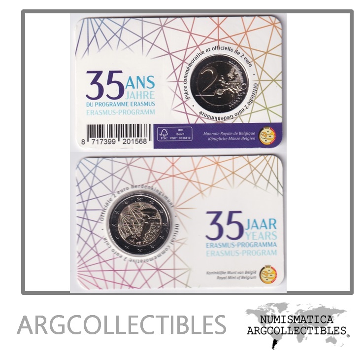 Belgica Moneda 2 Euros 2022 Blister Erasmus Bimetalica Unc