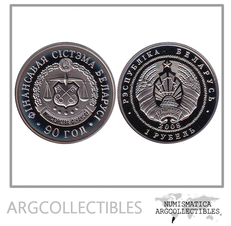 Bielorrusia Moneda 1 Rublo 2008 Niquel Sistema Financiero KM-312 Proof