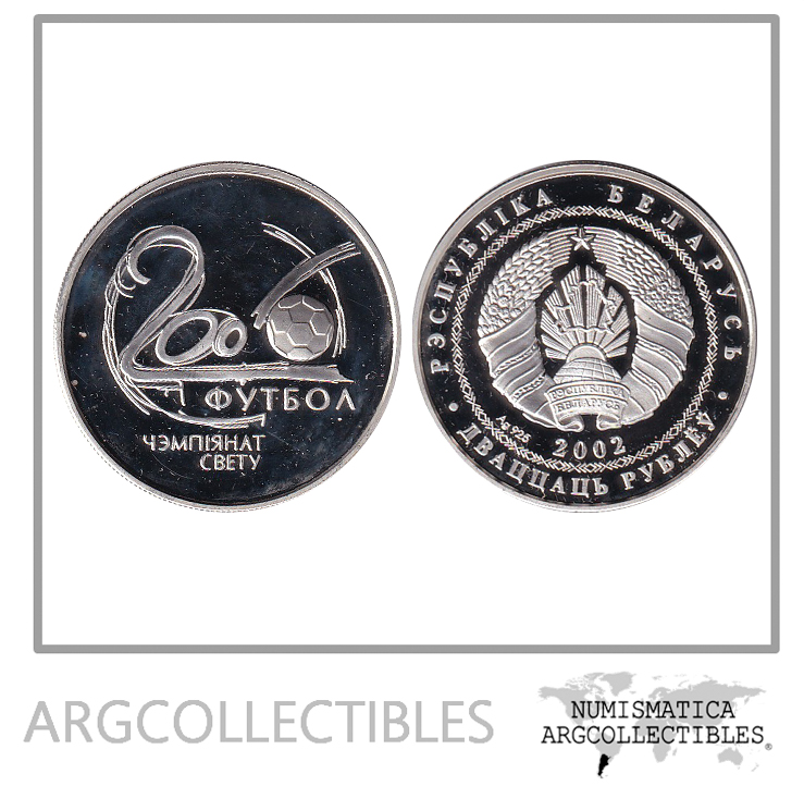 Bielorrusia Moneda 20 Rublos 2002 Plata Mundial Futbol 2006 Alemania KM-119 Proof