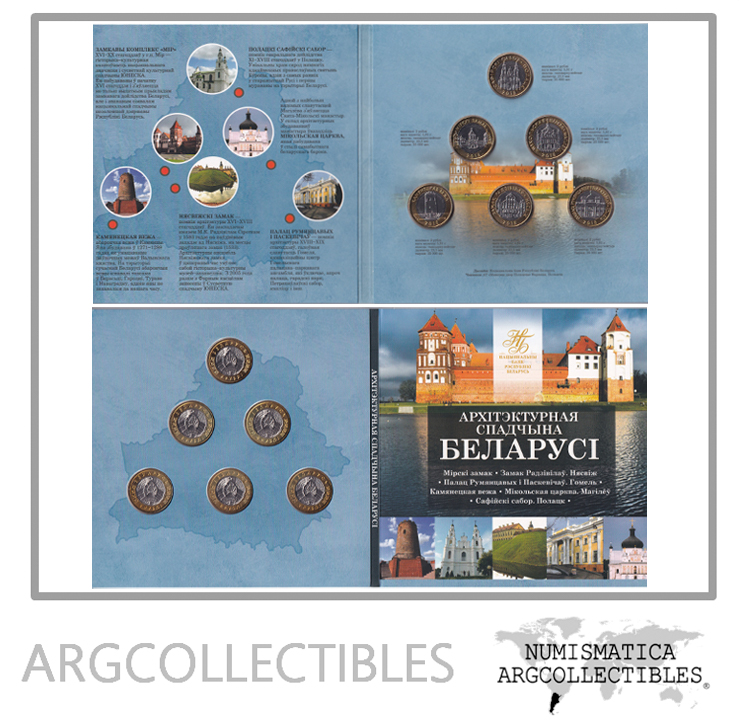 Bielorrusia Set x6 Monedas 2 Rublos 2018 Bimetalica Arquitectura de Belarus Proof