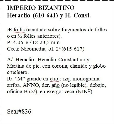 Bizantina Imperio Bizantino Heraclio Follis Nicomedia Of. 2da. 615/17